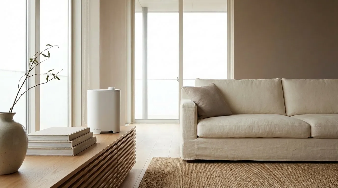 コンパクト設計のため、棚上やサイドテーブルなどにも置けます。 効果を安定させるには、壁に密着させすぎず、空気が回る位置がおすすめです。
