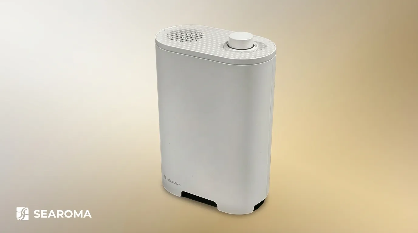 SEAROMA(シーロマ)は、天然植物から抽出した抗菌消臭成分を含む専用リキッドを熱で気化させ、粒子を細かくし、内蔵ファンで空間に拡散することで消臭・抗菌を行います。 同時に、香りも楽しめる「空気清浄機型アロマディフューザー」です。